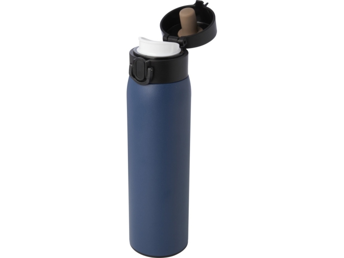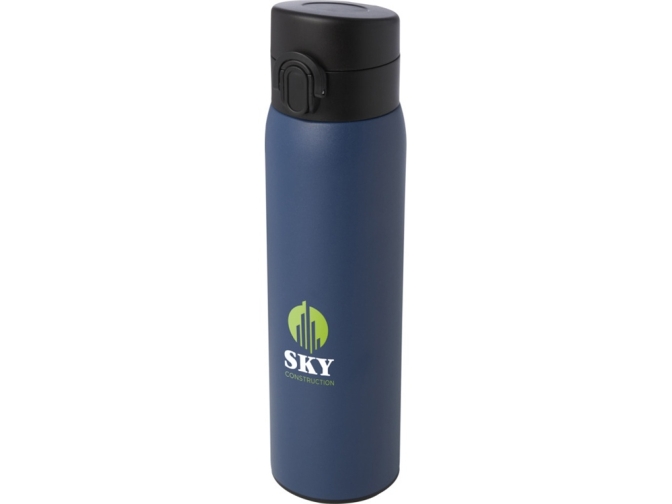 Стильная фляга-термос из переработанной нержавеющей стали, сертифицированная RCS, с простым механизмом открытия с помощью кнопки. Фляга герметична, а благодаря медной вакуумной изоляции напитки будут сохраняться горячими или холодными в течение нескольких часов. Объем составляет 450 мл. Поставляется в подарочной коробке из переработанного картона. Recycled stainless steel, Recycled PP Plastic. Packaging: FSC Mix Credit P5.1 CU-COC-877277.