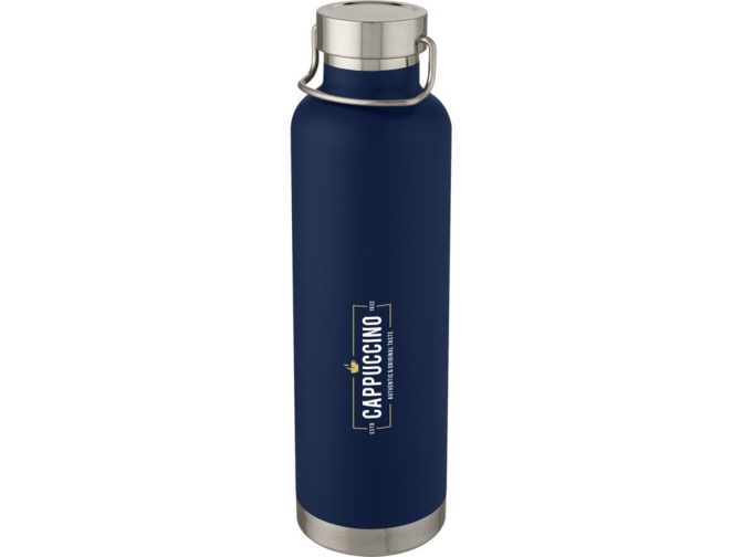 Большая спортивная бутылка с двойной стенкой и вакуумной конструкцией из нержавеющей стали 18/8 и медной изоляцией, которая сохраняет напитки горячими или холодными в течение нескольких часов. Конструкция также предотвращает образование конденсата на внешней стороне бутылки, а модное порошковое покрытие делает ее чрезвычайно прочной. Навинчивающаяся герметичная крышка из нержавеющей стали с прочной, выполненной из нержавеющей стали, петлей для руки. Широкое отверстие для легкого заполнения, разливания и очистки. Не содержит БФА, испытана и одобрена в соответствии с немецким законодательством о безопасности пищевых продуктов (LFGB). Проверена на содержание фталатов и одобрена для использования в соответствии с правилами REACH. Идеально подходит для кубиков льда. Объем 1 л. Рекомендуется мыть вручную. В подарочной коробке из переработанного картона.