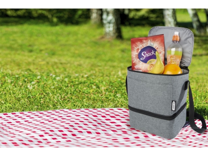 Сумка-холодильник Tundra выполнена из переработанного материала, в ней достаточно места для всех ваших продуктов, которые вы берете на обед. Имеет одно верхнее изолированное отделение на молнии и одно нижнее изолированное отделение на молнии. Нижнее отделение идеально подходит для бенто-бокса, а в переднем прорезном кармане удобно носить защитную маску и другие небольшие предметы. Подкладка и внешний слой сумки-холодильника PEVA изготовлены из переработанного РЕТ-пластика.