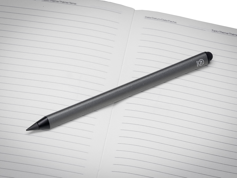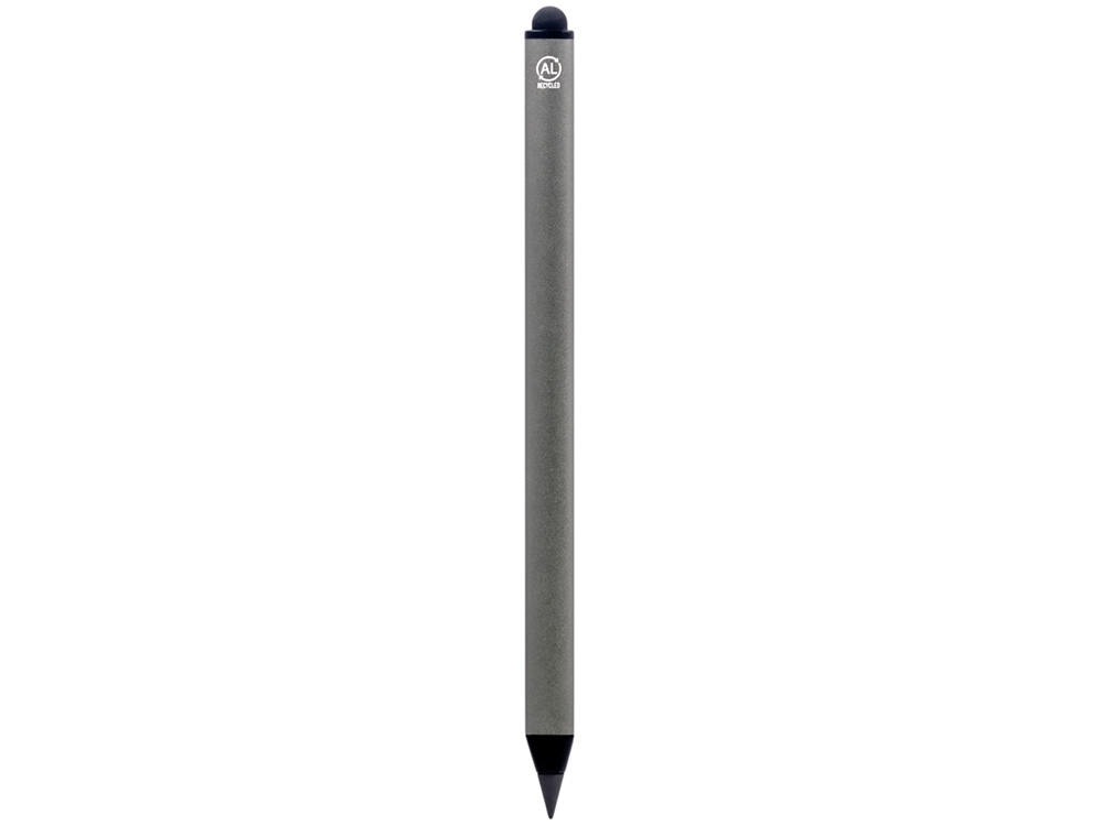 Карандаш изготовлен из переработанного алюминия. В отличие от обычных карандашей его не нужно точить, и он не пачкает руки. С обратной стороны карандаша есть стилус, которым удобно что-то делать на телефоне или планшете.