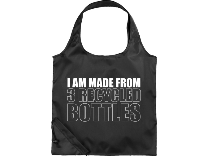 Сумка-шоппер Packaway 210D на 51% состоит из переработанного ПЭТ-пластика со специальным чехлом, обеспечивающим легкое хранение. На одной из сторон сумки напечатан текст I am made from 3 recycled bottles.