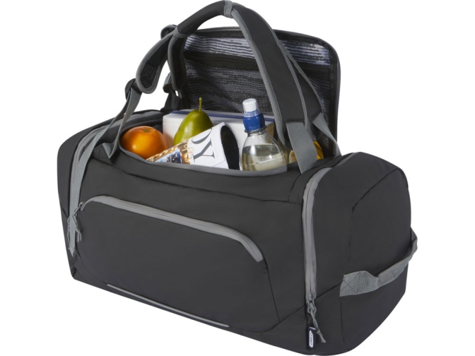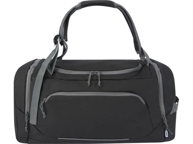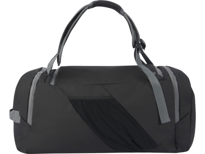 Водонепроницаемая спортивная сумка-рюкзак 2-в-1, изготовленная из переработанных материалов, сертифицированных согласно стандарту GRS, включая молнии. Имеет просторное основное отделение с U-образным отверстием для удобного хранения и доступа, два боковых кармана на молнии (включая отделение для обуви), один передний карман на молнии, сетчатый карман для бутылки с водой сзади и светоотражающую окантовку для видимости. Эту сумку можно носить 3 различными способами: в руке, через плечо или как рюкзак благодаря мягким регулируемым плечевым ремням. Из переработанных материалов, сертифицированных по стандарту GRS, изготовлены основная ткань, подкладка, лямки и застежки-молнии. Емкость: 35 литров. Не содержит ПВХ.