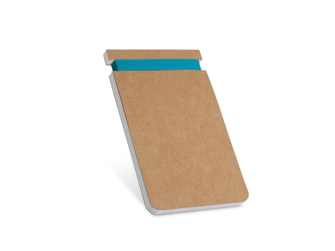 Блокнот формата B7 с 120 страницами без линовки из вторично переработанной бумаги и обложкой из картона. 85 x 125 мм