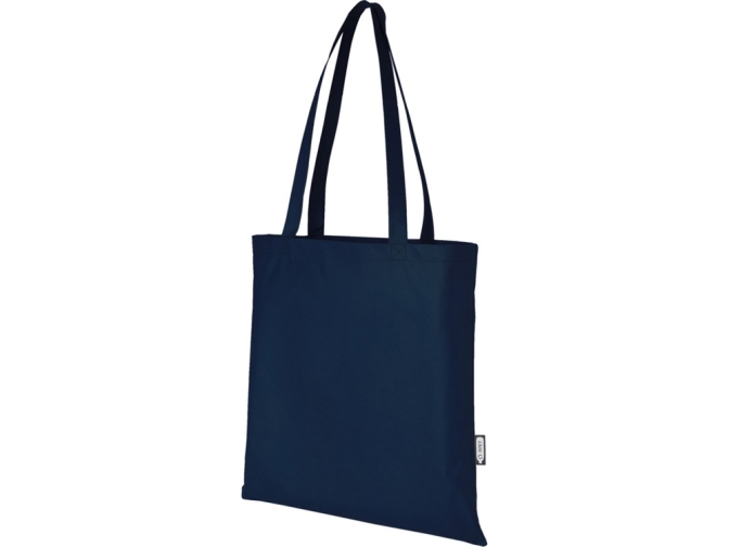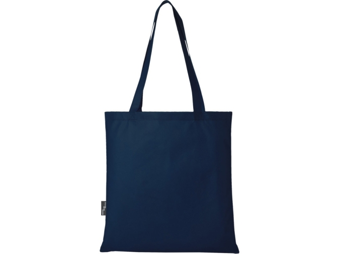 Большая эко-сумка Zeus из переработанных материалов, сертифицированных GRS, изготовленная из прочного и устойчивого к разрыву переработанного PET-пластика, является идеальным и более экологичным вариантом для ярмарок или конференций. Тонкий дизайн делает эту модель элегантной и подходящей для ношения легких предметов, например, блокнота и ручки. Ручки имеют длину 29 см, поэтому эко-сумку легко носить через плечо. Прочность до 5 кг. GRS certified recycled polyester, 80 g/m2.