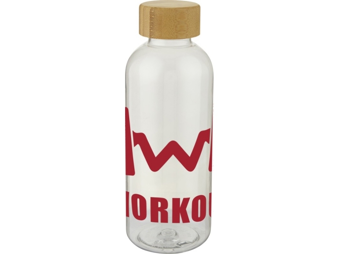 Одностенная спортивная бутылка из 100% переработанного пластика со стильной бамбуковой крышкой. Не содержит БФА, испытана и одобрена в соответствии с немецким законодательством о безопасности пищевых продуктов (LFGB). Проверена на содержание фталатов и одобрена для использования в соответствии с правилами REACH. Бамбук используется из устойчивых, экологически и социально ответственных источников. Объем 650 мл. Рекомендуется мыть вручную. В подарочной коробке из переработанного картона. Переработанный PET пластик, Бамбуковое дерево, Пластик PP. #?0:>2:0: FSC Mix Credit P5.1 CU-COC-877277.