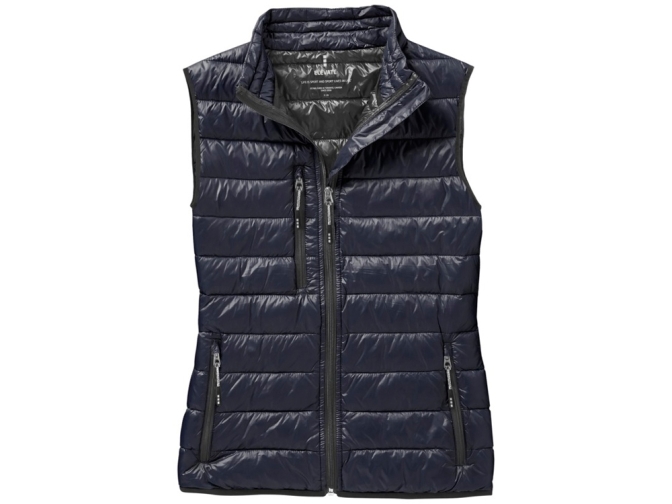Женская пуховая жилетка Fairview. Стандартный покрой. Ткань не пропускает пух. Карманы для рук и нагрудный на молнии. Внутренний противоветровой клапан и защита подбородка. Эластичная обшивка внизу и на проймах. Ткань дышащая, ветронепроницаемая и влагоотталкивающая. Отражающий лого сзади. Ремешки на собачку (второй комплект в цвете антрацит). Жилет - версия победителя премии Reddot, куртки Scotia. Ткань из 100% нейлона с матовым и блестящим водоотталкивающим покрытием, 20D. 80% пух и 20% перо.