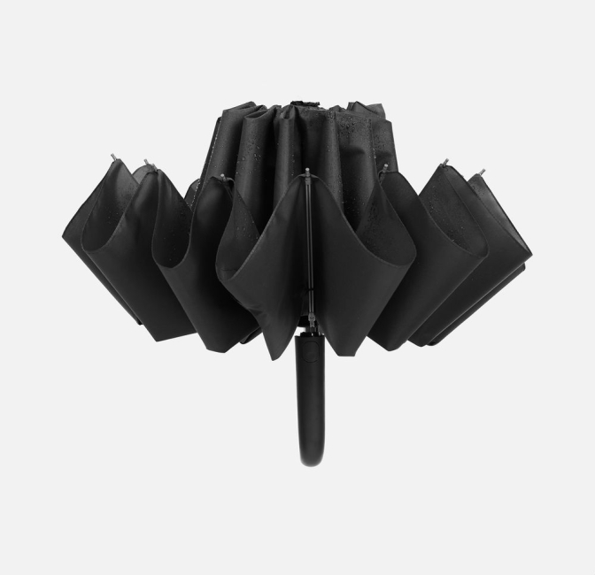 Зонт-автомат обратного сложения с 12 усиленными спицами, легким алюминиевым штоком и ручкой-карабином. Преимущество обратного сложения заключается в том, что при закрытии внутренняя поверхность зонта остается снаружи, а мокрая сторона — запаковывается внутрь. За ручку-карабин удобно подвесить зонт на рюкзак или сумку.Продуманный дизайн и совершенный механизм — inLoop.Зонт-автомат, 3 сложения, 12 спицСистема антиветерРучка-карабинПоставляется в чехле