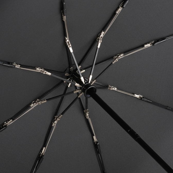 Элегантный складной зонт Steel снабжен системой WindProof, благодаря которой способен выдержать сильные порывы ветра. Купол зонта произведен из сертифицированного OEKO-TEX полиэфирного эпонжа из переработанного пластика, окрашенного по технологии waterSAVE. Новый процесс окрашивания — непосредственно в процессе производства материала — снижает потребление электричества, воды и химически активных веществ.Комбинированная ручка со встроенной кнопкой для автоматического открытия и закрытия зонта удобно лежит в руке. Покрытие софт-тач приятно на ощупь и препятствует выскальзыванию ручки из рук, а металлическая вставка придает всему зонту солидный вид.Зонт-автомат, 3 сложения, 8 спицГибкие спицы с системой защиты от ветраКомбинированная ручка со встроенной кнопкой для автоматического открытия и закрытия зонтаПоставляется в чехле