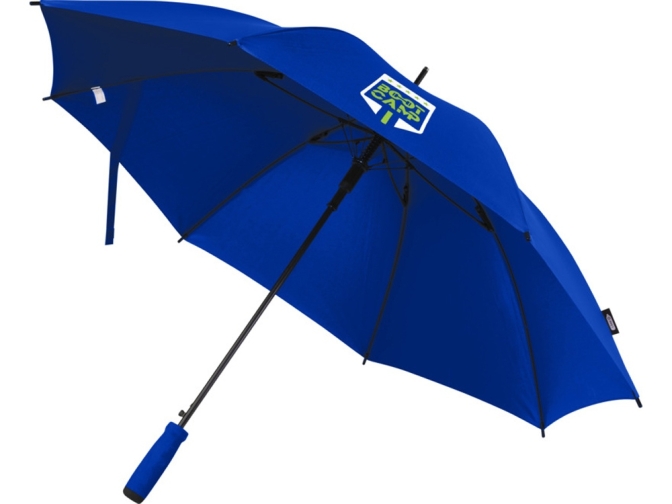 23-дюймовый зонт с куполом из эпонж полиэстера из переработанного ПЭТ-пластика. Автоматическое открытие. Имеет прочный металлический стержень, раму из стекловолокна и удобную ручку из EVA с кончиком черного цвета. Большая зона для печати на каждой панели.