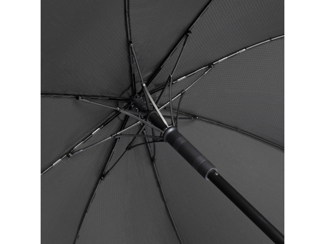 Стильный зонт-трость может укрыть от дождя 2х человек благодаря куполу большого диаметра. Купол изготовлен из эпонжа из переработанного пластика с использованием технологии WaterSAVE, когда окрашивание материала происходит в процессе производства, за счет чего снижает потребление электроэнергии и воды. Зонт плавно открывается при нажатии на кнопку на ручке.