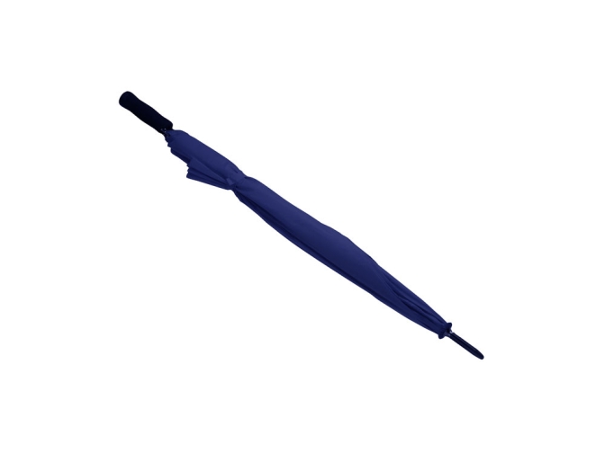 Зонт с кнопкой автоматического открытия размера XL с ручкой, стержнем и наконечниками черного цвета. Длинные стекловолоконные спицы. Ручка из EVA. 130 см в диаметре.